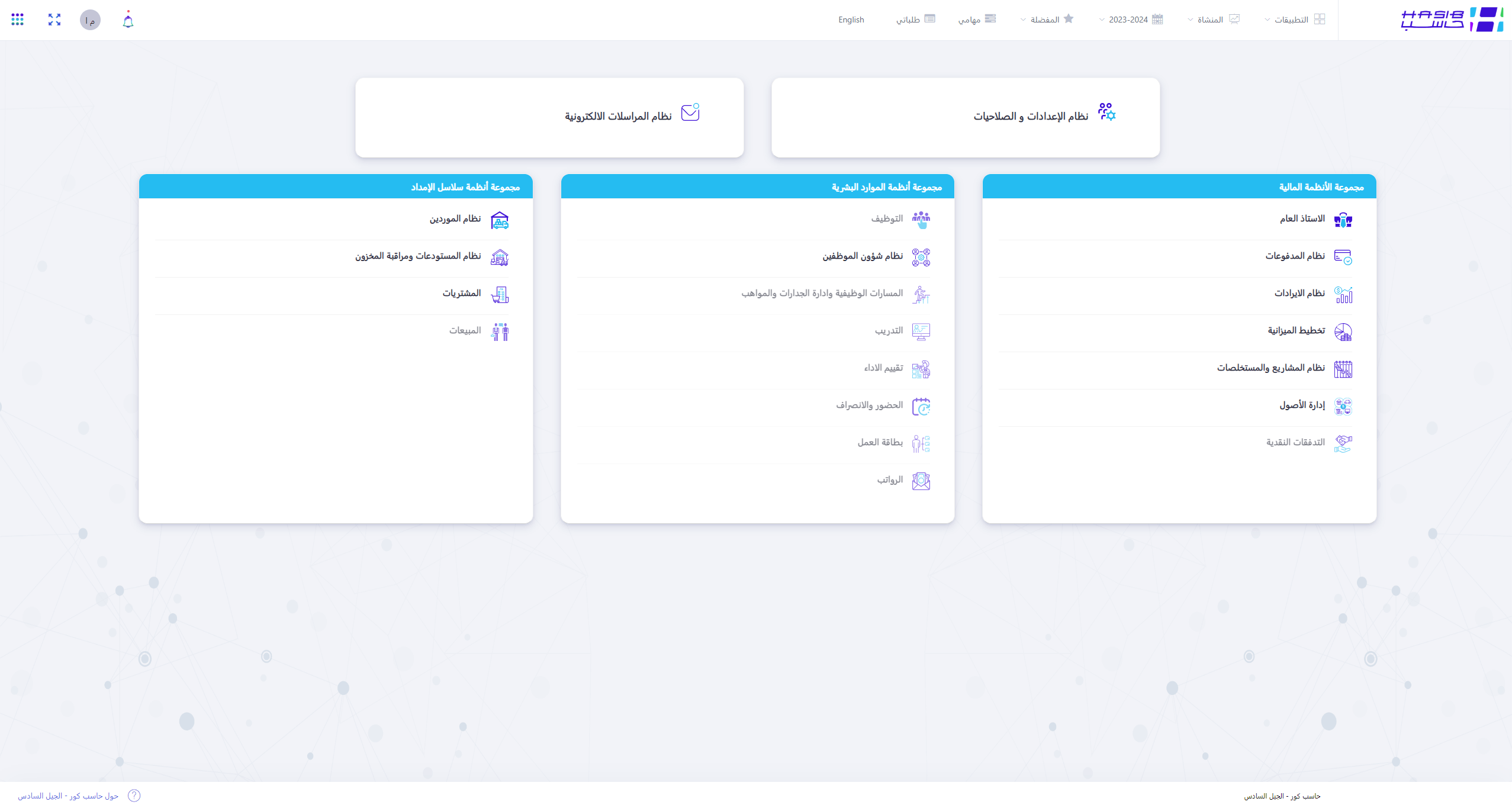 حزمة أنظمة مالية وإدارية متكاملة تم تطويرها محليًا في حاسب لتلبي احتياجات المؤسسات الكبيرة والمتوسطة، وتدعم بكفاءة عالية إدارة عمليات القطاعين الحكومي والخاص. تعتمد الحلول على أفضل الممارسات والمعايير الدولية في المحاسبة والإدارة، مع توافق كامل مع الأنظمة واللوائح المعتمدة في المملكة العربية السعودية. تمنح الحزمة المؤسسات مرونة شاملة لإدارة مواردها بفاعلية، وتخطيط عملياتها بدقة، وتحقيق مستوى أعلى من الانضباط المالي والإداري، وهي اليوم مطبّقة لدى نخبة من الجهات الحكومية والخاصة.